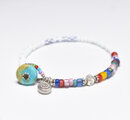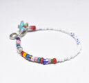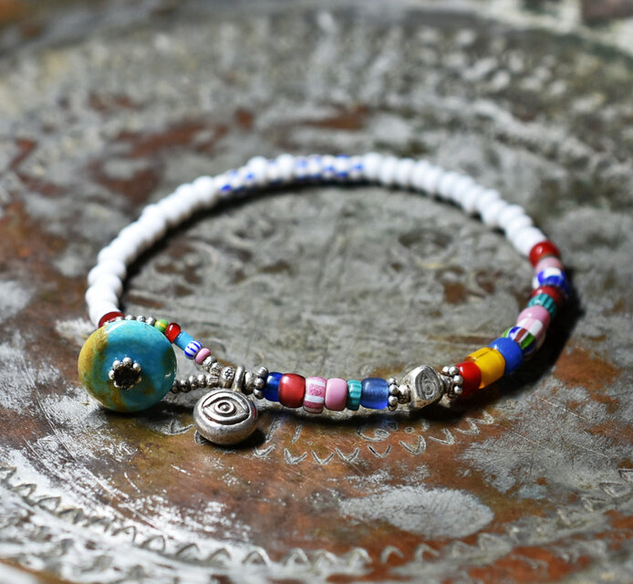 ホワイト&多彩アンティークヴェネチアビーズのブレス(眼・ターコイズ留め金)