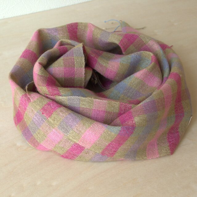 ホームスパン リネン×カシミヤマフラー パステルチェック
