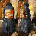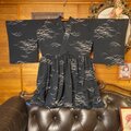 【 着夏物 ミニ丈 ワンピース ドレス 和ロリ 2部式作り帯 名古屋帯 お太鼓 リメイク 和洋折衷 洗える 化繊 ハンドメイド レトロ 古着 単衣 フリーサイズ 漆黒のシアー × 流水のシグナル MKW-75 】