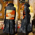 涼やかな黒の夏着物を贅沢に使用した、知的な奥行きを感じさせるミニ丈ワンピースです。目から覗く肌のシアー感が、伝統的な流水文様を「情報の残像」のように美しく揺らし、都会的なエッジを構築します。華やかなオレンジの二部式帯が、漆黒に鮮烈なスパイスを。 自分だけの美学を貫きたい、特別な一日の装いに。
