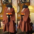 【 着物 ミニ丈 ワンピース ドレス 和ロリ 2部式作り帯 名古屋帯 お太鼓 リメイク 和洋折衷 洗える 化繊 ハンドメイド レトロ 古着 単衣 フリーサイズ 焦茶の粒子 × 水玉のリズ厶 MKW-76 】