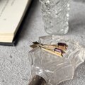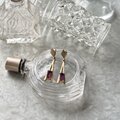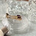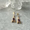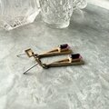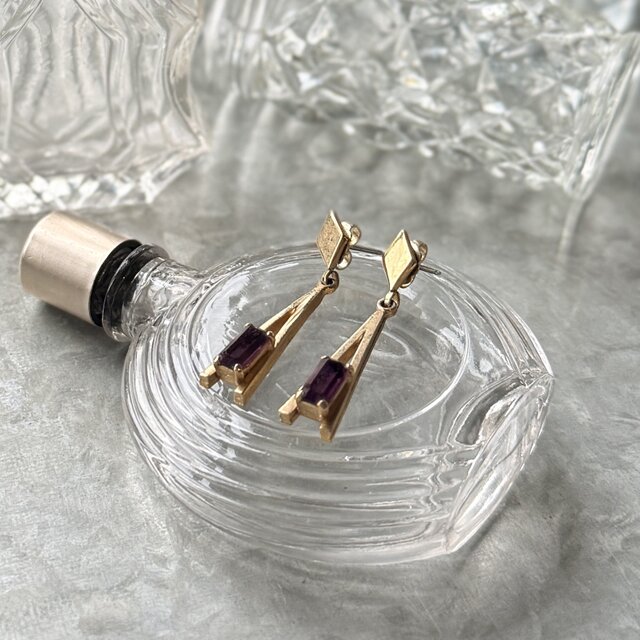 縦長のシルエットのゴールドフレームに、パープルのバゲットカットされたグラスがアクセントになったスイングピアス。