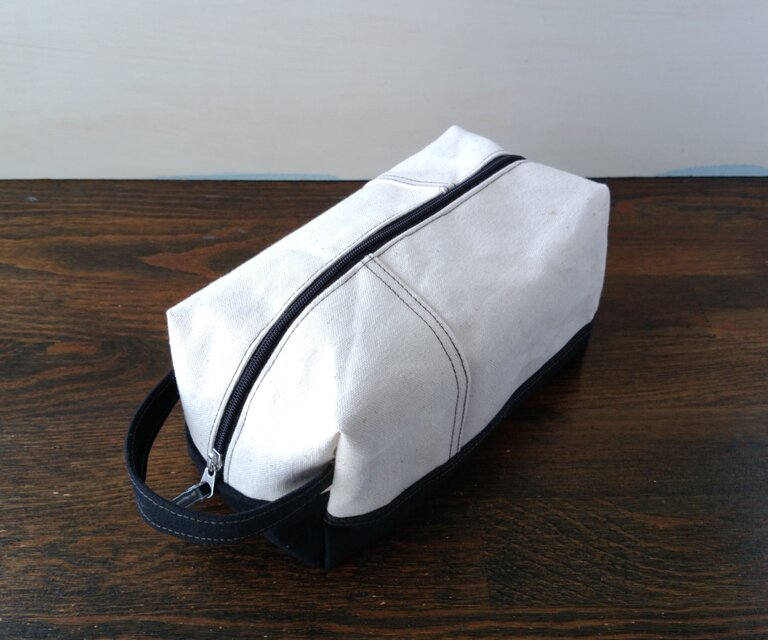 帆布で作ったボックス型のポーチです。