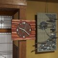 時計盤には古民家の廃材など薄い板、窓枠などを利用して新しい感覚に作り変えました。