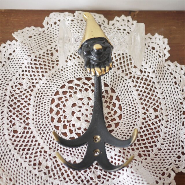 妖精をモチーフにしたコートや帽子を引掛け置く鉤形金具です。