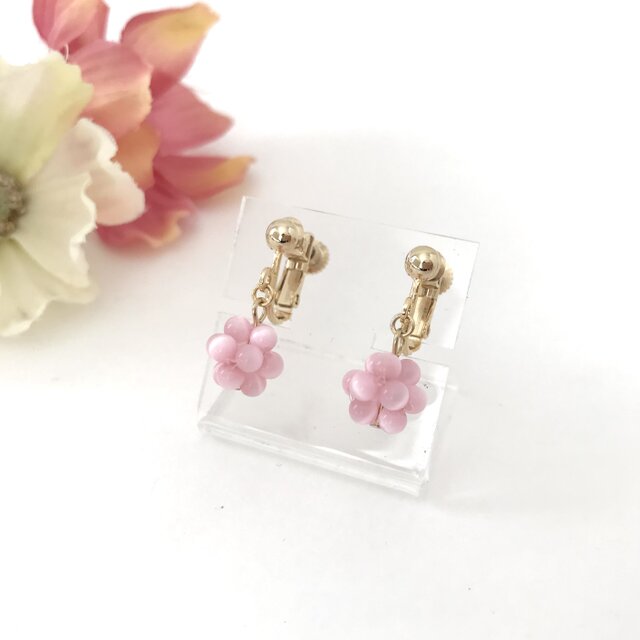 #ピンク #春 #ビーズボール #立体的 #ボールイヤリング #まる #軽い #夏 #ビーズアクセサリー #キャッツアイ #ビーズ編み #パステルカラー #華やか #上品 #大人かわいい #可愛い #小ぶり #シンプル #桜 #イヤリング #お花見 #ビーズ #小さめ #誕生日 #プレゼント #ギフト #桜色 #母の日 #プチギフト #普段使い