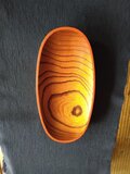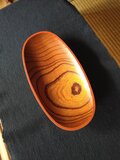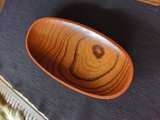 欅材を、鑿と鉋で刳り拭き漆で仕上げています。