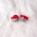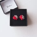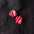 【天然石刺繍/ピアス 】Red Coral × Coated Labradorite Earrings/レッド×グレーバイカラー