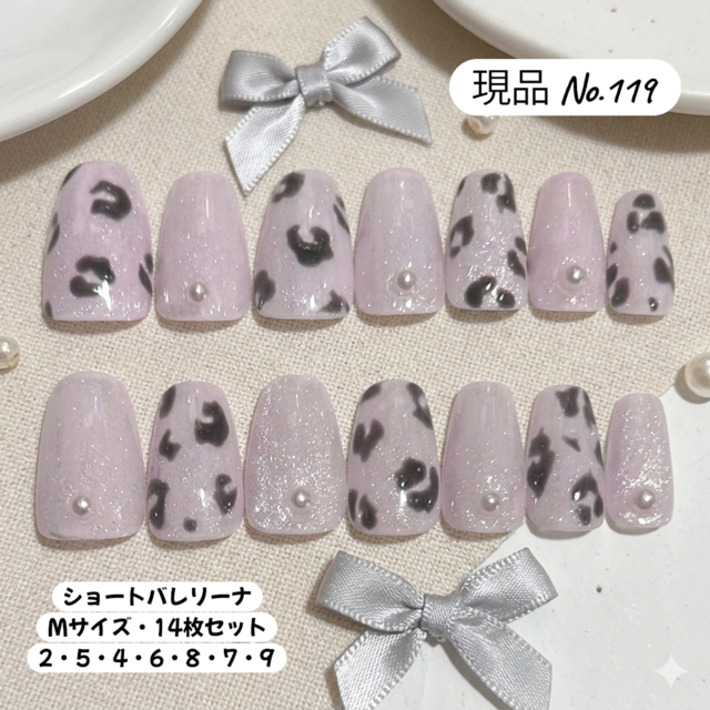 【現品 No.119】くすみラベンダー×レオパード×パール♡大人可愛いトレンドネイル|ショートバレリーナM|ジェルネイルチップ