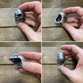 特殊な形なのでサイズゲージでは計れませんがサイズは約20号の指に合うサイズになっています。