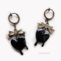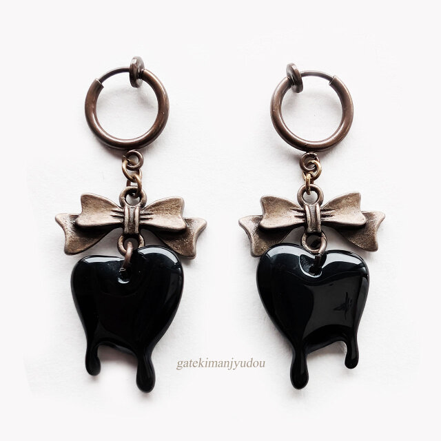 リボンの下でとろけたハートのモチーフが揺れるフープイヤリングです