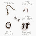 ネジバネ式イヤリング、ポストピアス、フックピアス、チタンポストピアス、チタンフックピアス、樹脂フックピアス(透明)への変更が可能です