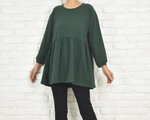 ふんわりとした袖と、胸下切り替えのギャザーが印象的なチュニックブラウス。