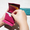 財布を開いた状態でのスライドカードポケットはナナメ方向にも出し入れすることができるのでカードの出し入れが抜群にしやすい。