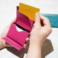 従来の三つ折り財布は、カードポケット両端を縫っていました。『timik airyティミックエアリー』はカードポケットの内側を縫うことで両端に縫いしろがなくなり、横幅は極小サイズに仕上がりました。