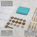 MAX容量は厚手のカード約8枚、小銭約15枚、お札約12枚と鍵1本。