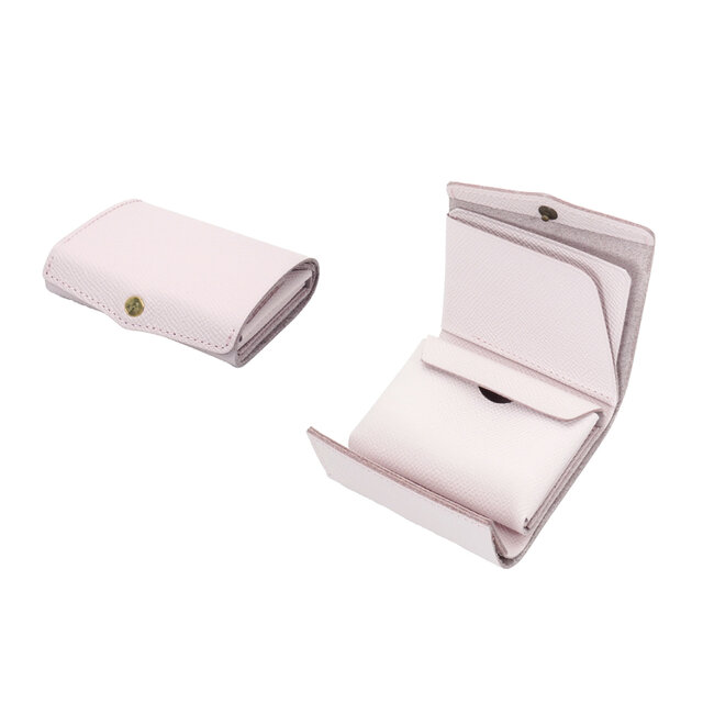 [送料無料] 極小サイズで軽やかに!カードサイズの極小軽量三つ折り財布『timik airyティミックエアリー』ホワイトピンク