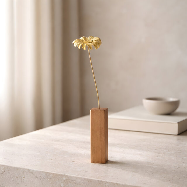 真鍮マーガレットミニ一輪オブジェ 木製花瓶付き