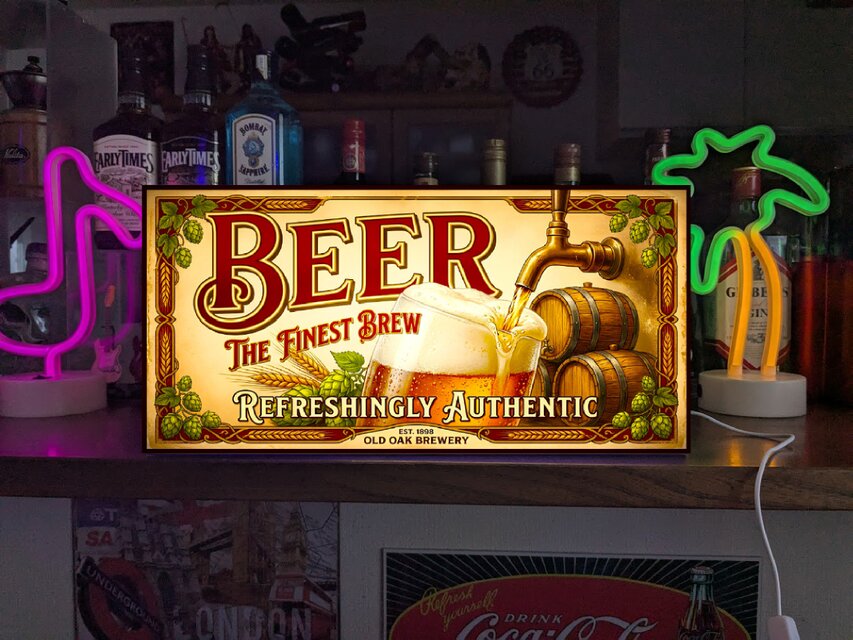 レトロスタイルのビール電飾サインで、インテリアに最適です。