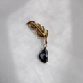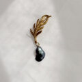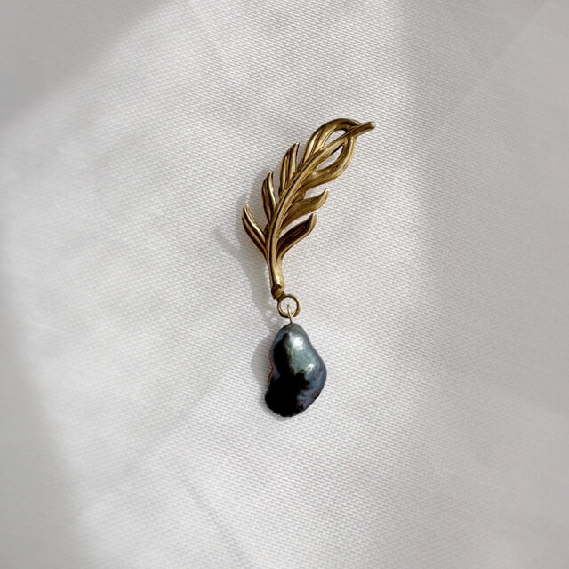 ヴィンテージゴールドのような渋みのある色合いとリーフのラフな質感。使用したブラックケシパールは大きすぎない上品なサイズ感なので、普段使いにワンポイントとしてお使い頂けます。メンズプレゼントにも!
