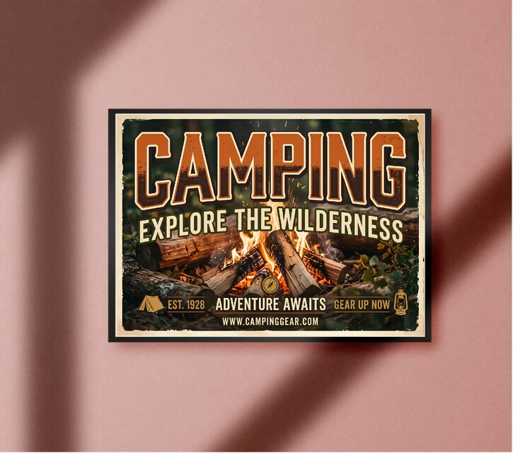 - テキスト: CAMPING, EXPLORE THE WILDERNESS, ADVENTURE AWAITS