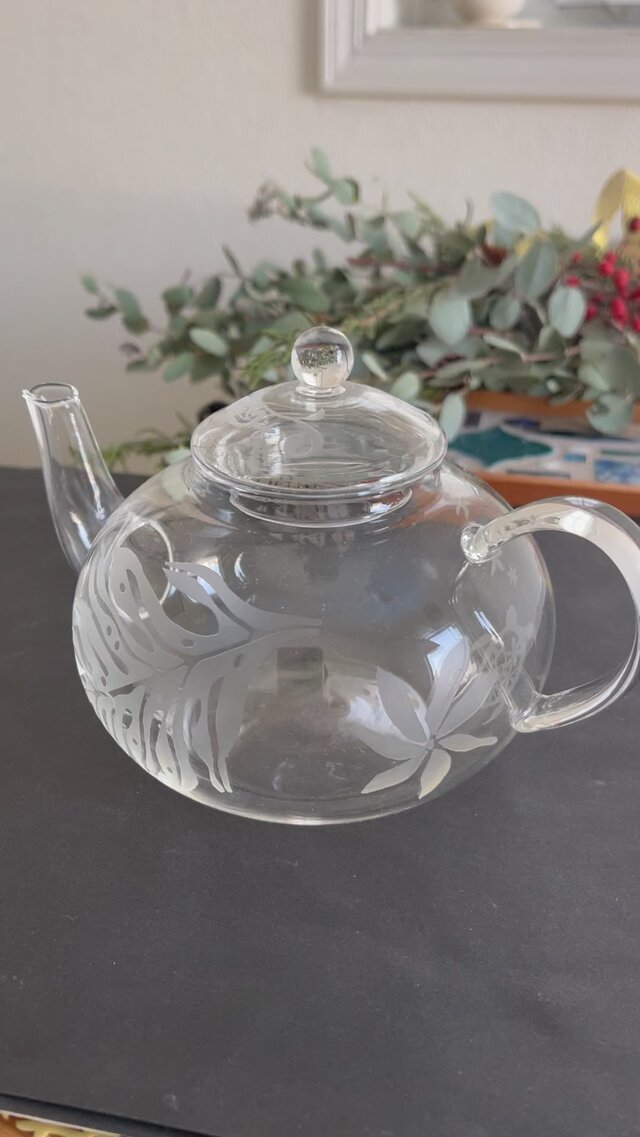 ガラスのティーポットにティアレ・ラウアエ・ホヌを