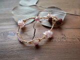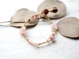 日本の麻&ピンクトルマリン・ローズクォーツのブレスレット