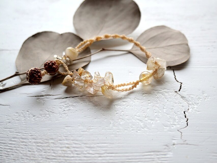 透明感のある金色のルチルクオーツは手元を優しく涼しげに飾ってくれます。