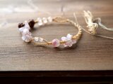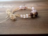 日本の麻&ピンクトルマリン・ローズクォーツのブレスレット