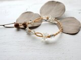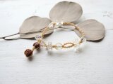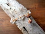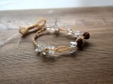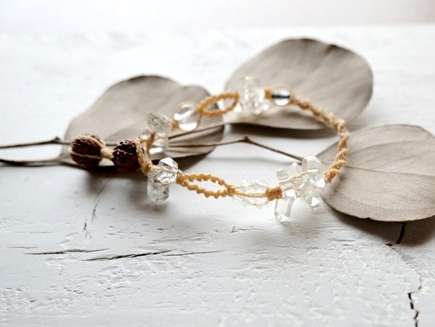 日本の麻の手紡ぎ糸と天然石クォーツとブラックルチル・ハーキマーダイヤモンドのブレスレットです。