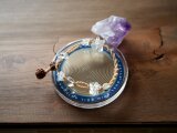 大きい方の丸い天然石はクオーツ、小さい方の丸い天然石はブラックルチルです。