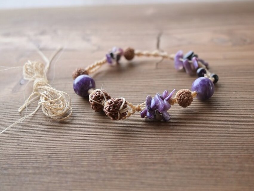 日本の麻&チャロアイト&菩提樹のブレスレット