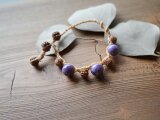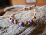 日本の麻の手紡ぎ糸と天然石チャロアイト、悟りの木といわれる菩提樹のブレスレットです。