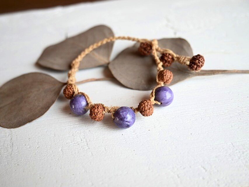 日本の麻&チャロアイト&菩提樹のブレスレット
