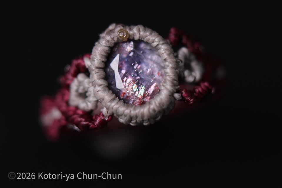 【スマイルベアーシリーズ】スマイルベアーのコンフェッティ・アイオライトサンストーン・マクラメリング【菫輪】