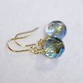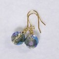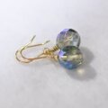 高品質な石質が魅力的な、クリスタルクオーツ(水晶)のラウンドカットに、チタン蒸着加工を行い、偏光オーロラ調の輝きが楽しめる、グリーンフラッシュクオーツです。シンプルな揺れるピアスに仕立てました。