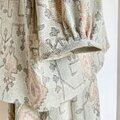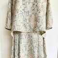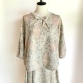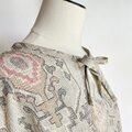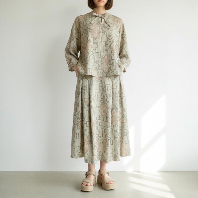 リボンブラウス プリーツスカート セットアップ【送料込み】着物リメイク ベージュ
