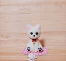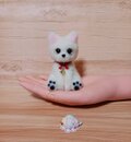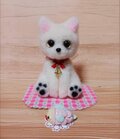 可愛らしい白い羊毛フェルトの猫さんの人形と、お魚のミニチュアチャームのセットです。