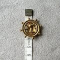 ステアリングホイールをモチーフにしたゴールドトーンのフレームに、風をはらんだヨットが立体的にデザインされています。