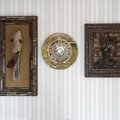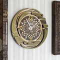 文字盤の装飾には木片とガラス玉などを使用してます。