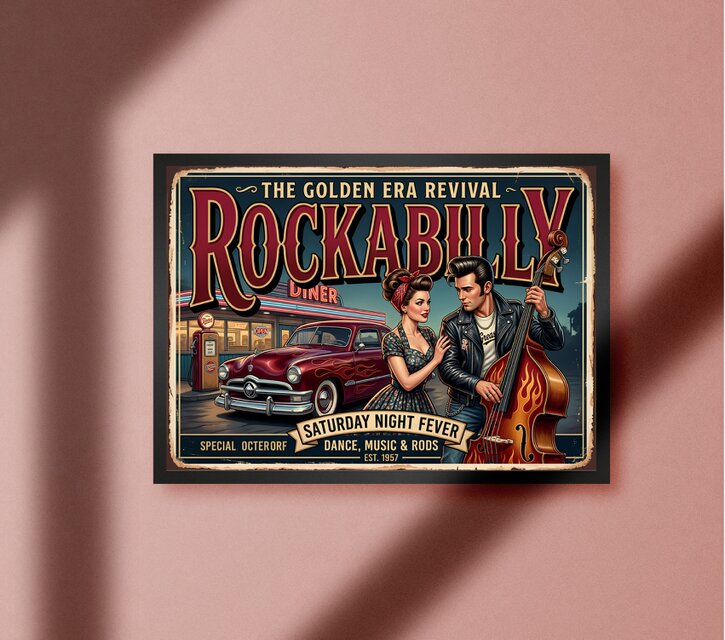 - デザイン: ロカビリー風のアートプリント