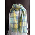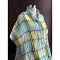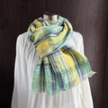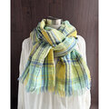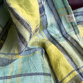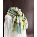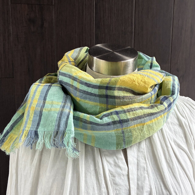 東炊き リネンのストール チェック ミント×イエロー