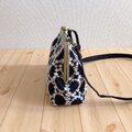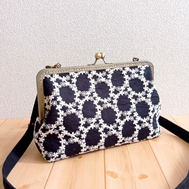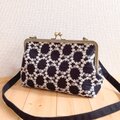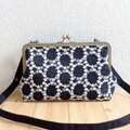 刺繍生地を使用した、長財布も入る、がま口ショルダーバッグです。
