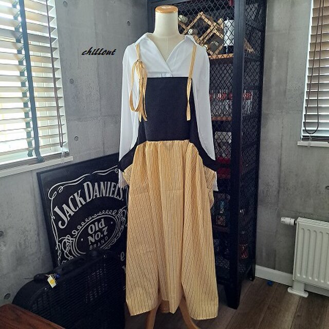 マキシ丈のギャザーエプロンドレスが出来上がりました。