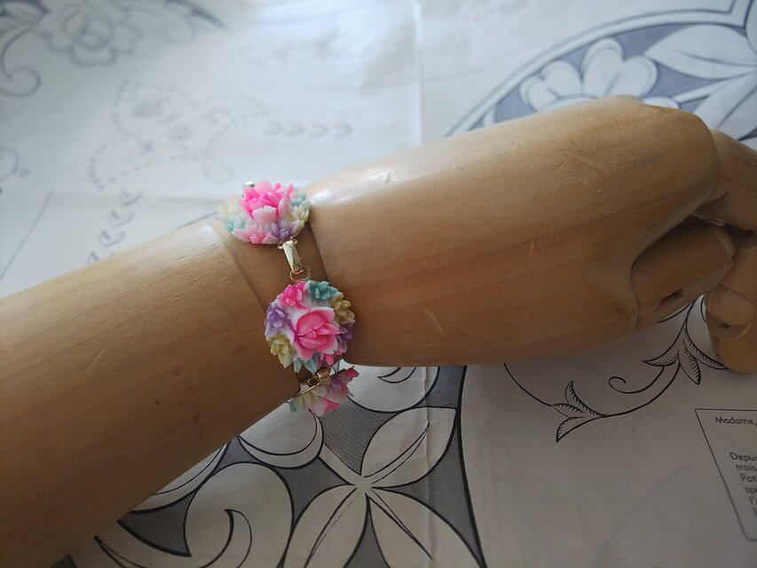 ヴィンテージ セルロイド製お花5つのブレスレット お手首周り約17㎝
