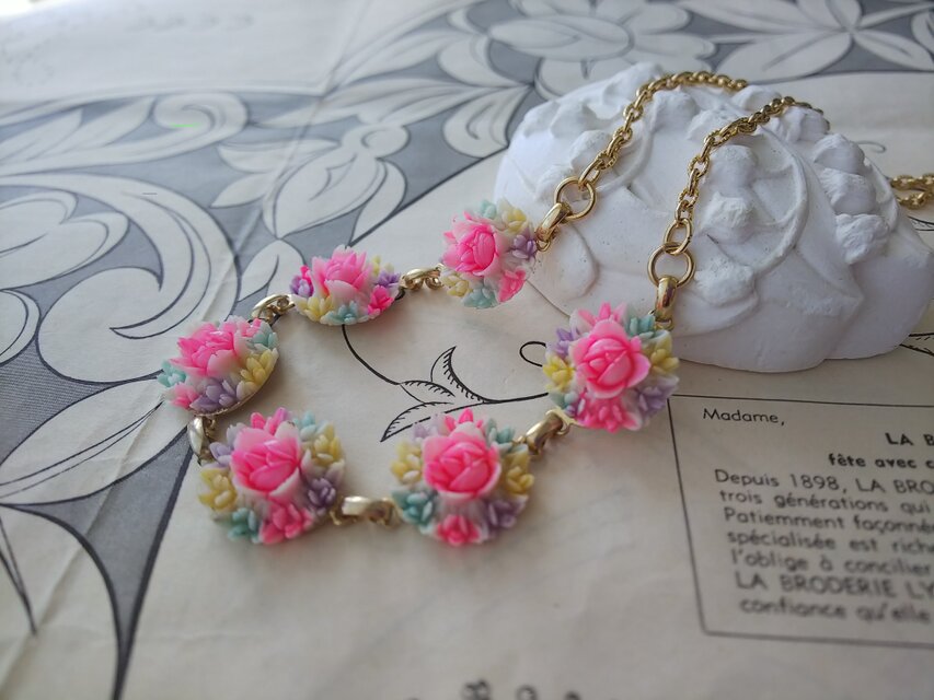 ヴィンテージ セルロイド製お花6つのネックレス 約44㎝