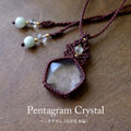 人気のブラジル産五芒星(ペンタグラム)水晶と、上部には細い金針入りのルチルクォーツをあせたマクラメ編みペンダントネックレスです。