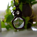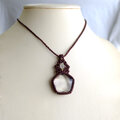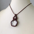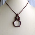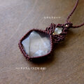 透明感が高く天然のクラックはありますが、水晶の中に五芒星にデザインカットが施された魅力的な水晶です。まるでエネルギーが詰まったような力強さを感じられる五芒星水晶をシンプルながらも存在感溢れるマクラメペンダントに仕上げました。