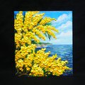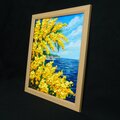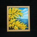 【作品名】 :油絵【心癒される春の景色 ~ミモザと青い海~】