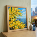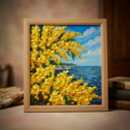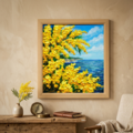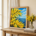この「心癒される春の景色 ~ミモザと青い海~」は、お客様の空間に春の息吹をもたらし、特別な思い出を演出する魅力あふれるアート作品です。